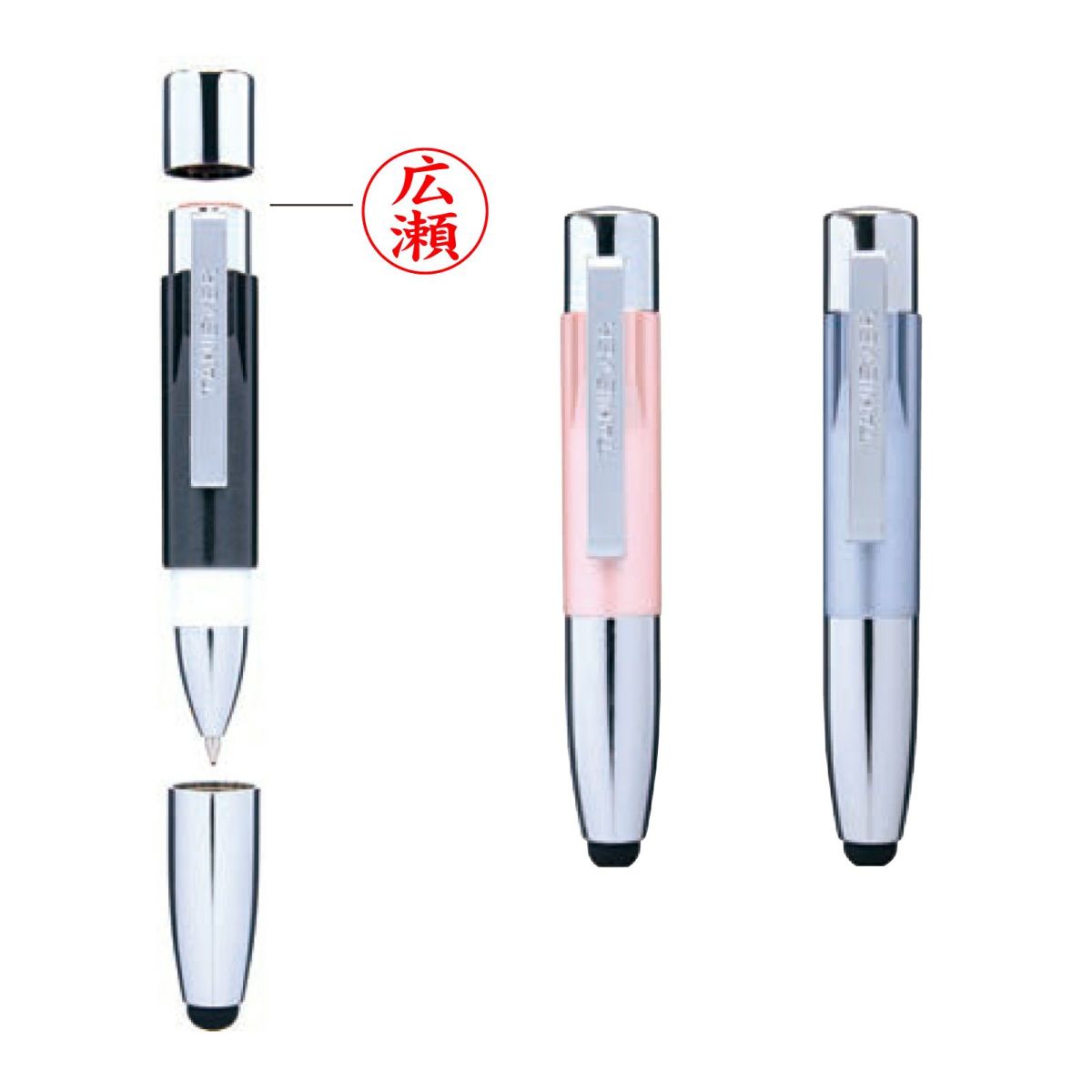 ネーム印とボールペンが一体化した便利なネームペン『スタンペン』。これ一本で、書くことも押印もスムーズに行えるためビジネスシーンや様々な場面で役立ちます。印面はネーム印、訂正印、認印など組み合わせは多彩です。あなたにぴったりの一本を、ぜひお選びください。