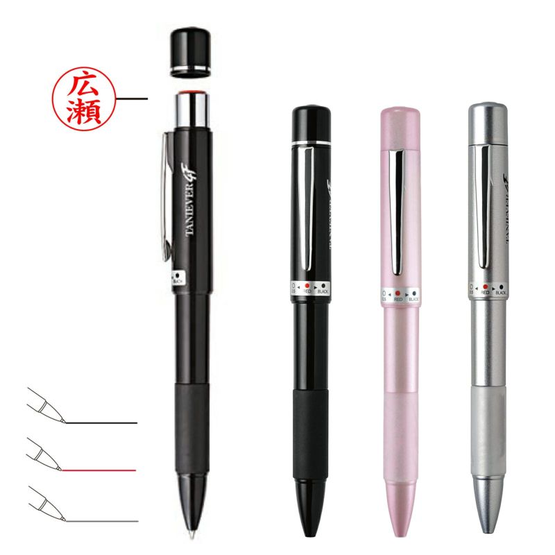 黒ボールペン、赤ボールペン、シャープペンに9mmの浸透ネーム印がついた「1本で4役」の多機能なネームペンです。