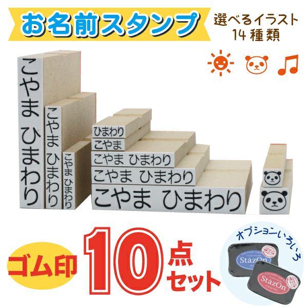 お名前スタンプx8本、イラストスタンプx2本 セット