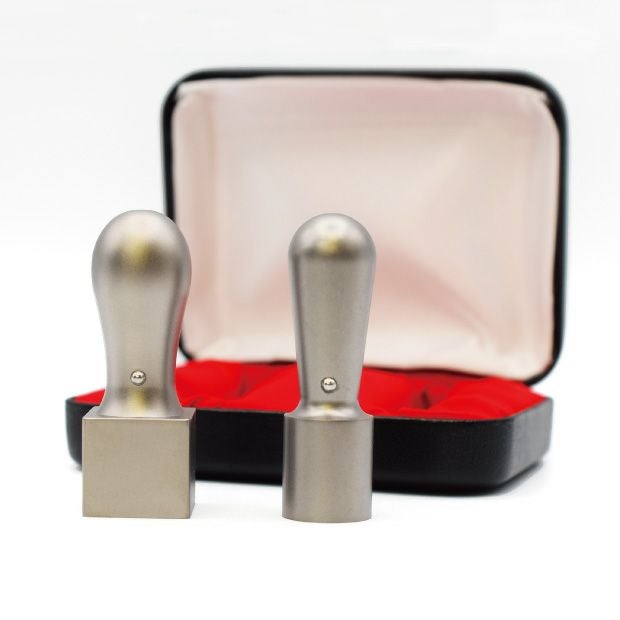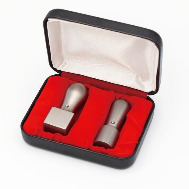 シルバーブラストチタン印鑑2本セット 実印15mm/銀行印12mm[ケース付き]