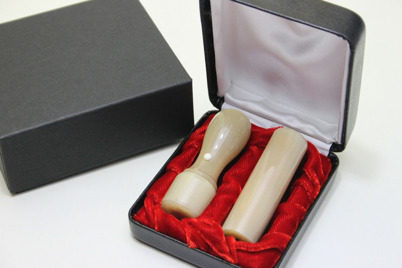 法人実印18mmと法人銀行印18mmの高級印材2本セット。専用ケース付きでお買い得です!