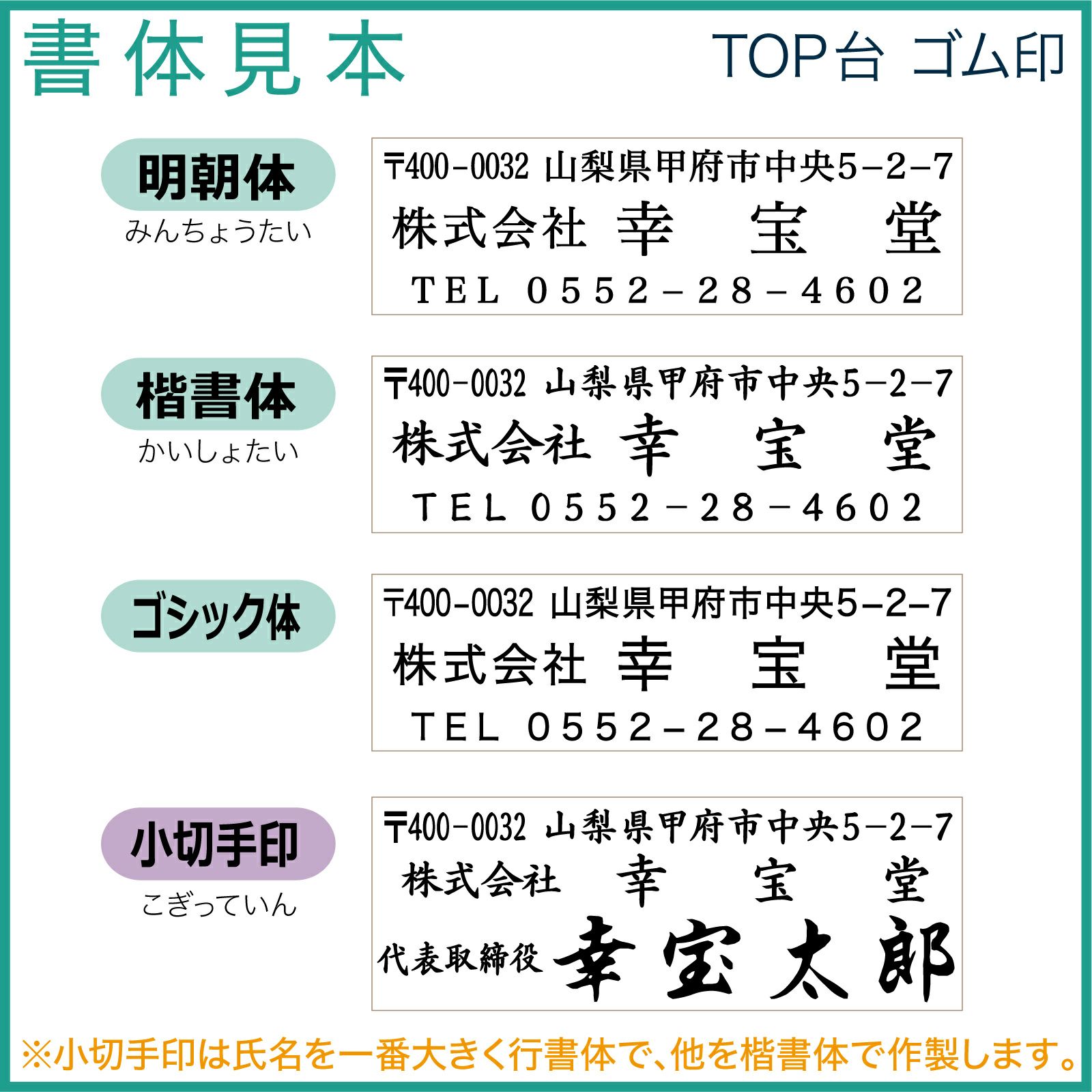 1行ゴム印・氏名印