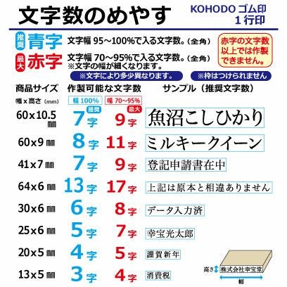 一行ゴム印 台木64×6mm (横書き)