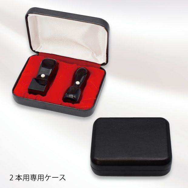 【弁護士印 2本セット】 黒水牛18ミリ天丸+21ミリ角印 2本セット 専用ケース付