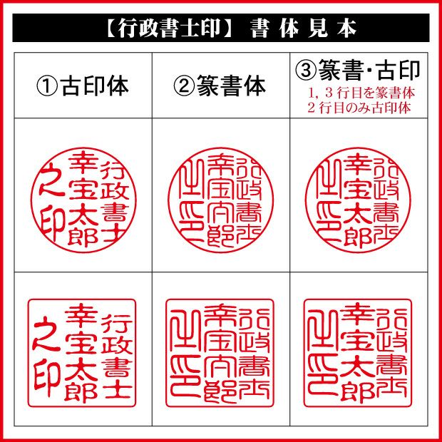 【書 体】:篆書体、古印体、篆書・古印ミックスの3種類よりお選びください。