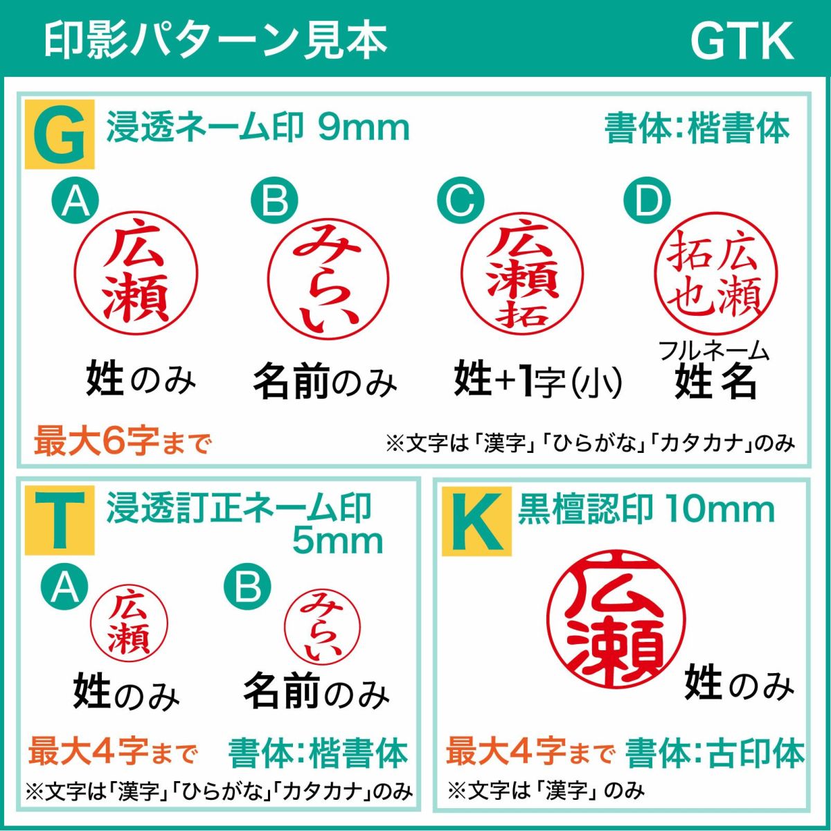 1行ゴム印・氏名印